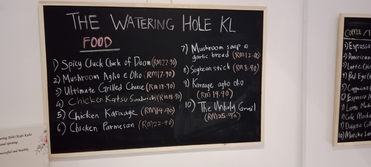 The menu at The Watering Hole Cafe offers a variety of options organized into distinct categories to suit different dining occasions, from light snacks to more substantial meals. It includes selections in pasta and noodles, pastries, and tea beverages.